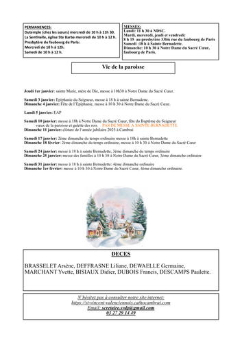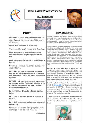 Feuille paroissiale pour janvier et février 2026